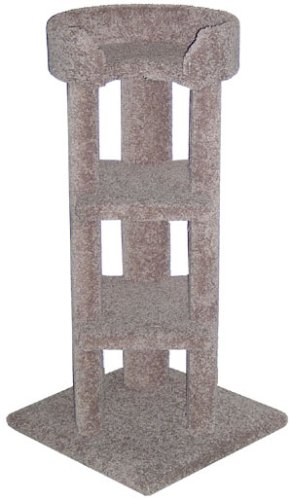 This newest Corner Tower is 41" tall and has two 12"x16" shelves and topped with a large 16" sleeping tub with a 4" lip. Purr-fect for curling up in and solving the world's problems. The three solid wood posts are attatched to our wide 20"x20" wobble-free base. Put this Corner Tower in a sunny location and you-know-who wil be you-know-where all day long. Shipped fully assembled it's ready for your room.