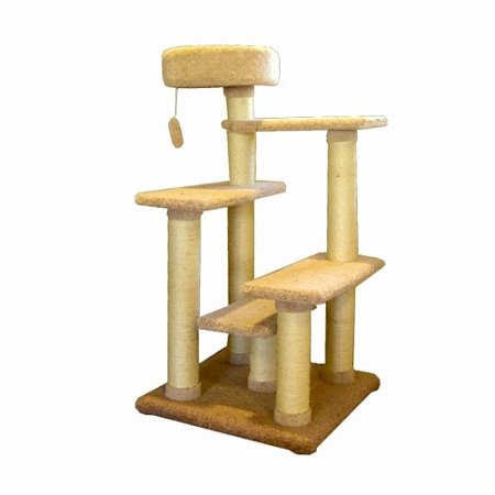 Majestic Pet Products 48" Kitty Cat Jungle Gym Cat Tree is covered in designer carpet. This Kitty Cat Furniture features Five lounging platforms for your cat or kittens long afternoon naps. The posts feature sisal rope scratching areas for your cat or kittens clawing pleasure. Also included is a dangling cat toy. This cat scratching post is great for homes with multiple cats. Assembles in minutes with simple step by step instructions. Cleans easily with a vacuum and damp cloth. Dimensions: L 25" x W 25" x H 48" inches.
